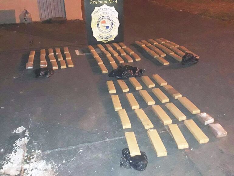 La droga fue llevada hasta la sede de la Regional 4 de la Senad, donde se procedió a su pesaje, totalizando 64 kilos de droga distribuida en 74 panes.