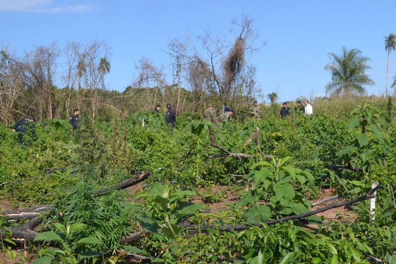 "Estamos empezando recién, por eso no vamos a poder precisar la cantidad de hectáreas, pero de primera mano ya encontramos dos hectáreas aproximadamente, pero vamos a recorrer la zona porque nos dijeron que existen mayor cantidad de plantaciones en los alrededores", indicó el comisario Francisco Gómez Aquino, jefe de la Comisaría 17ª de Capiibary, quien encabeza el operativo.