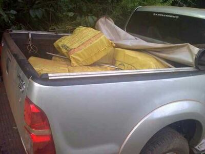 La droga, cuyo pesaje aun no ha sido deternimado con exactitud, estaba distribuida en varios ladrillos ocultos a su vez en costales que eran transportados en la carrocería de la camioneta.