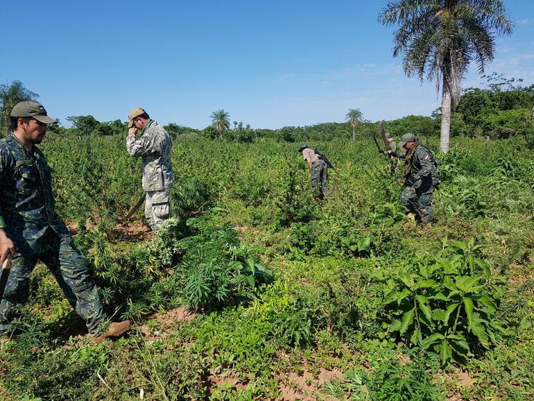 Los intervinientes hallaron el "producto" que ya estaba picado y también alrededor de cinco hectáreas de cultivos a punto de ser cosechados. Fueron completamente incinerados, según el fiscal Vicente Rodríguez Barreto, de la Unidad de Lucha contra el narcotráfico de Curuguaty.