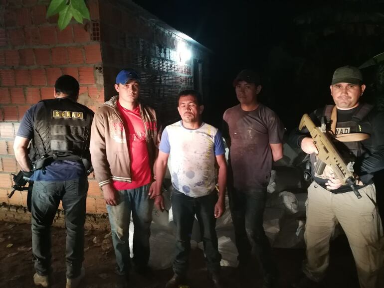 Las personas que se encontraban en la vivienda y fueron detenidas son Marcial Romero Ferreira, de 25 años; Venancio Morínigo, de 32 años, y Gabriel Ramírez Esquivel, de 35 años.