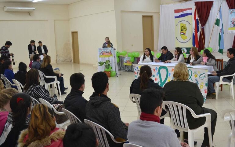 La alumna del nivel medio Carmen Damián Heil Gallas dio explicaciones sobre el trasfondo de la campaña nacional y Carlos Cañete de la Codeni de Mariscal Estigarribia remarcó que todos somos responsables de como se trata a los menores.