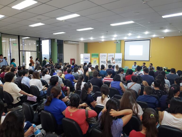 Exbecarios, como los sanlorenzanos Eduardo Said y Edgar Romero, expusieron respecto a sus experiencias exitosas para aplicar a las becas, en el marco del programa gratuito de mentoría. La actividad se llevó a cabo en el salón auditorio de la sede central de la cooperativa San Lorenzo.