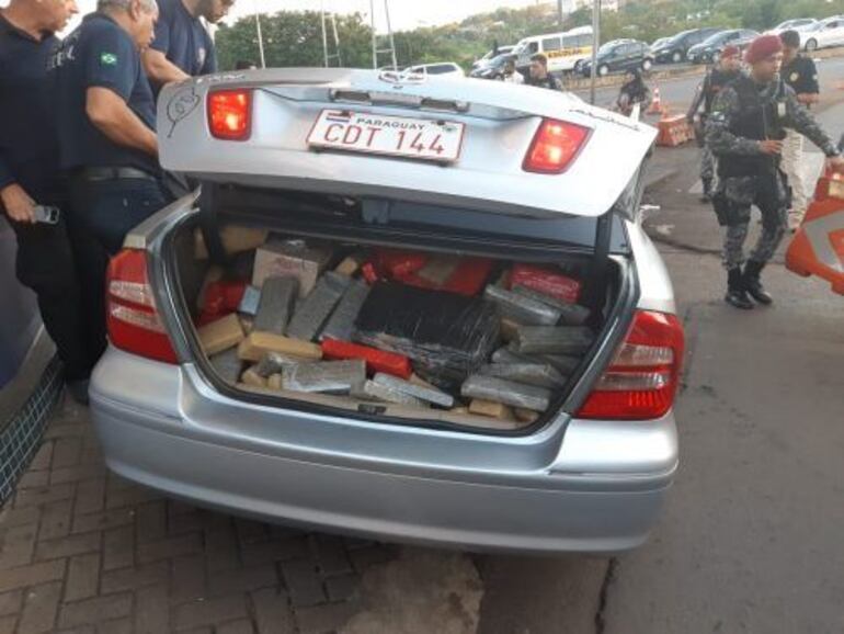 El detenido fue identificado como Mario Ramos Florentín (24), quien pretendía ingresar la droga al Brasil en un vehículo de la marca Toyota modelo Premio, color plateado, chapa CDT 144.