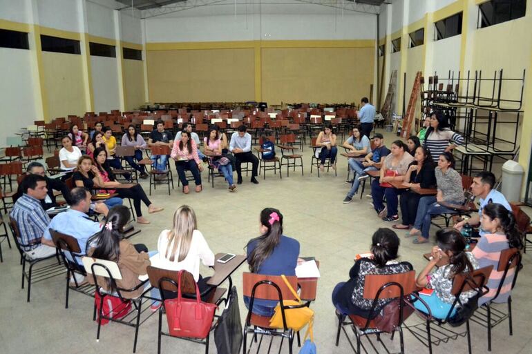El encuentro se realizó hoy en el aula magna de dicha casa de estudios, a las 18:00, y contó con la presencia del intendente local Diego Riveros (PLRA) y el comisario principal Julio Cesar Cabriza, jefe de la Comisaría 1ª de Caacupé, además del Director de la Facultad y miembros del Centro de Estudiantes, encabezados por Luz Palacios.