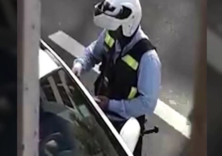 En el vídeo se ve perfectamente cuando el agente de la Policía Municpal de Tránsito (PMT) del distrito de Itauguá, Richar Fretes, recibe dinero del conductor de una camioneta de la marca Mercedes Benz con matrícula BBX 588 que estacionó irregularmente.