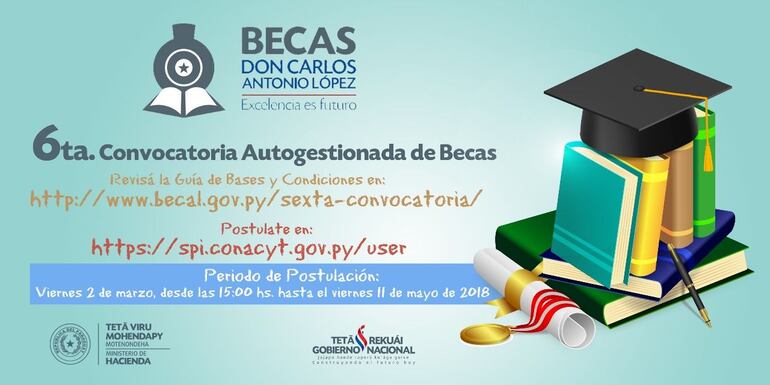 Los interesados en la Sexta Convocatoria Autogestionada de Becas pueden postularse en la página web de Conacyt, que estará disponible hasta el día viernes 11 de mayo del 2018, a las 15:00.