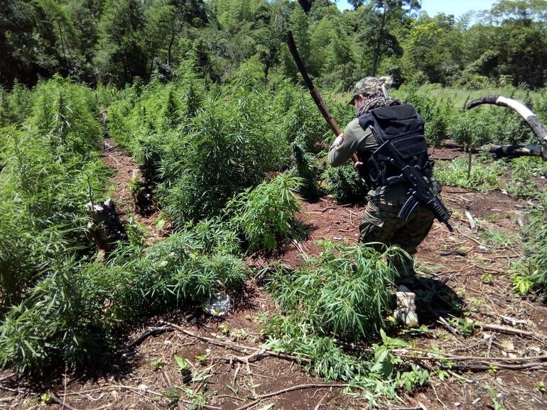 El fiscal Antidrogas Armando Cantero encabezó el operativo en donde ya no hallaron a ningún marihuanero, pero encontraron dos parcelas de marihuana en plena etapa de cosecha. También hallaron en el interior de un campamento unos 500 kilos de la marihuana picada, lista para ser prensada, además de 50 kilos de semillas, listas para su cultivo.