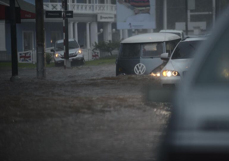Varias avenidas y calles de Asunción y el área metropolitana están convertidas en verdaderos ríos a causa de las intensas lluvias que se registran desde las 13:00 aproximadamente.