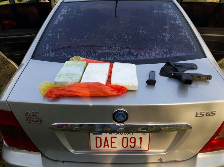 Los ahora detenidos iban en un auto de la marca Geely, color gris, con chapa Nº DAE 091, y fueron divisados por los agentes de la Secretaría Nacional Antidrogas (Senad).