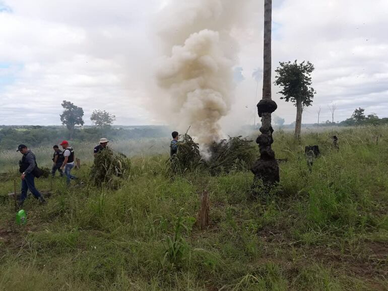 Según el reporte de la Policía, primeramente se pudo encontrar alrededor de cinco hectáreas de la hierba, luego dos hectáreas totalizando siete hectáreas distribuidas en diferentes parcelas. Los agentes destruyeron y procedieron a la incineración completa, previa comunicación al agente fiscal de Curuguaty, abogado Jorge Romero, cuya asistente, Elodia Zárate, acompañó a los agentes.