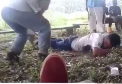 En el momento de los latigazos el joven se retuerce de dolor y otra persona lo sujeta. De la misma forma, en las imágenes se puede observar a otros adultos tomando tereré y mirando la escena como algo rutinario. Se presume que el hecho se registró en la zona del departamento de Caaguazú.