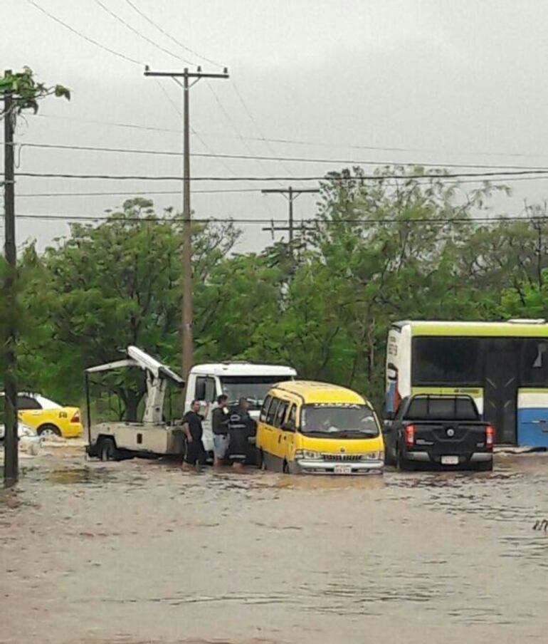Como con cada tormenta, varios puntos críticos de la Capital se llenaron de raudales. Los agentes de la Dirección de Policía Municipal de Tránsito de Asunción asistieron a varios automovilistas que quedaron atrapados durante esta mañana en medio de la intensa lluvia.