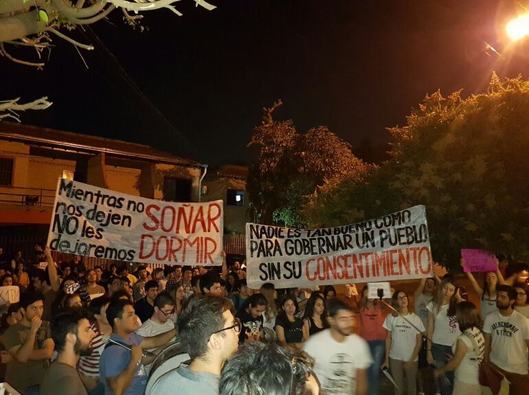 Señaló que le entregaron su renuncia redactada, atendiendo a su falta de tiempo. “Se escondió de nosotros y bajar a las 23, la renuncia que le entregamos ese día llevó consigo para leer y ahora le trajimos más notas similares para que pueda firmar” acotó al añadir que es una manifestación pacífica y que pidieron la presencia policial para evitar cualquier situación que lamentar y para no molestar a los vecinos se quedarían hasta las 21.