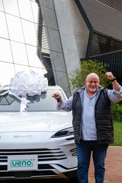 La sorpresa mayor fue otorgada al cliente Gavino Razuri, quien emocionado se llevó a su casa una SUV 0km. Gavino fue premiado por haber acompañado a ueno bank desde sus inicios adoptándolo como medio principal para todas sus operaciones, integrandolo en su vida diaria con el ahorro, medios de pago, préstamos y débitos automáticos.
