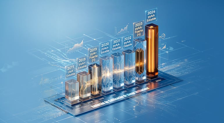 Uno de los hitos más significativos en la historia reciente de Coomecipar es su evolución en la calificación de riesgos. Desde 2017, la institución ha mantenido una tendencia ascendente que la ha llevado desde la categoría pyA Estable hasta alcanzar la pyAA Estable en 2024, la nota más elevada otorgada al sector cooperativo en Paraguay.