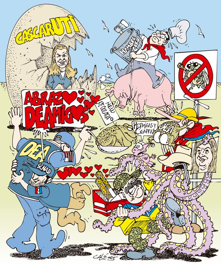 Ayer en un acto oficial en Luque, hizo una síntesis de la fábula de Esopo: La cigarra y la hormiga. Según su relato, los medios críticos son la cigarra gua’u que boicotea todo y él es la hormiga que trabaja todos los días para la grandeza del Paraguay.