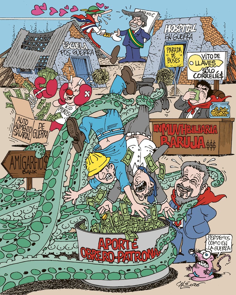 Los “profesores doctores” del gobierno de “Pinocho” Peña hablan de “economía de guerra” recién ahora. Sería bueno que sus teorías anglosajonas hagan aterrizar también a las binacionales, al IPS, al Ministerio de la Vivienda “pro departamento para los amigos” de Juan Carlos Baruja, y otras dependencias del Estado.