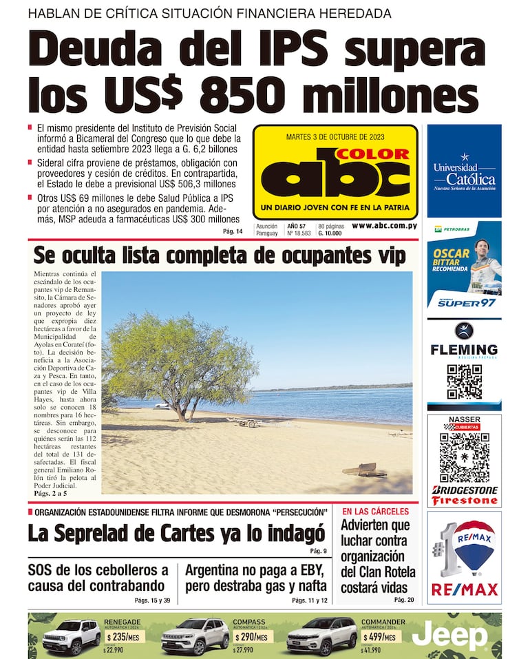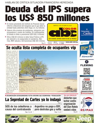Diario ABC Color: Resumen de los títulos principales del 3 de octubre de 2023