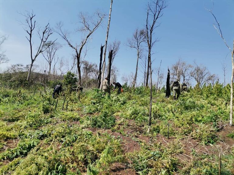 El lugar donde se realizó el allanamiento se denomina San Miguel “Belga Cue”, ubicado en la zona de la cordillera de San Rafael, del distrito de Tava’i, donde se realizó el corte, la destrucción e incineración de plantaciones de marihuana que estaba en etapa de cosecha. Además, los intervinientes se encargaron de la destrucción de un campamento precario y otros objetos utilizados por los narcos.