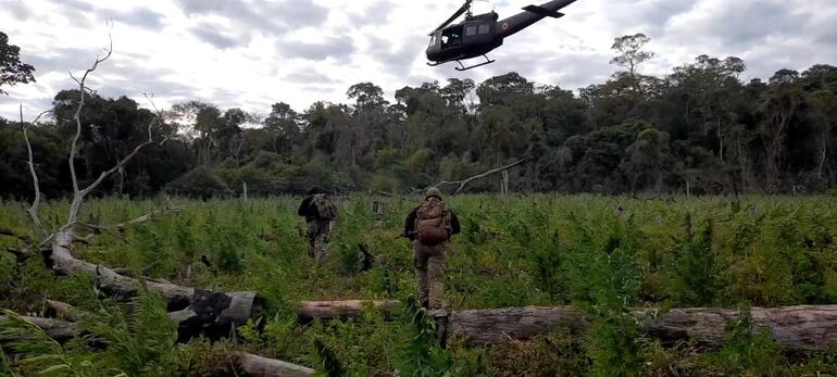 Los operativos se realizan en las zonas conocidas como Cerro Kuatiá y Rosalina, jurisdicción de Capitán Bado, en el departamento de Amambay. Dichas regiones poseen extensas áreas de bosques en las que se detectaron zonas de cultivos de la hierba narcótica.