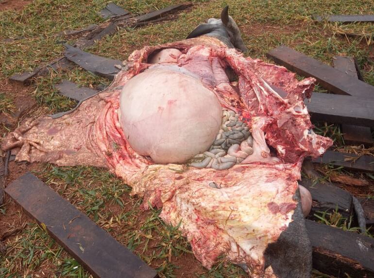 Durante la intervención realizada en la mañana de este lunes en el lugar del hecho, los intervinientes detectaron que efectivamente los atacantes faenaron dos ganados vacunos que estaban en un corral, cuyas carnes fueron alzadas en una furgoneta de color rojo por los delincuentes para luego darse a la fuga.