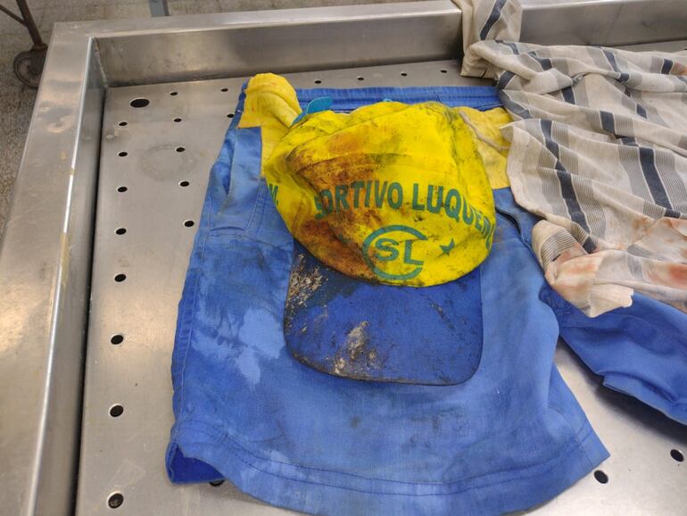 El hombre vestía una camisa de estilo polo, de color blanco con rayas grises y azules, además de unos shorts de color azul y amarillo, y un gorro de los mismos colores, con la insignia del club Sportivo Luqueño. Es un adulto de estatura mediana y piel trigueña, con cabello blanco.