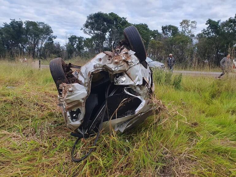 Los efectivos policiales de la Subcomisaría 6 de la colonia Guavirá tomaron intervención tras ser alertados por transeúntes sobre un vehículo capotado al costado de la ruta. Se trata de un automóvil de la marca Toyota tipo Allion, color plateado Chapa AAJA 452, registrado a nombre de la esposa del comunicador.