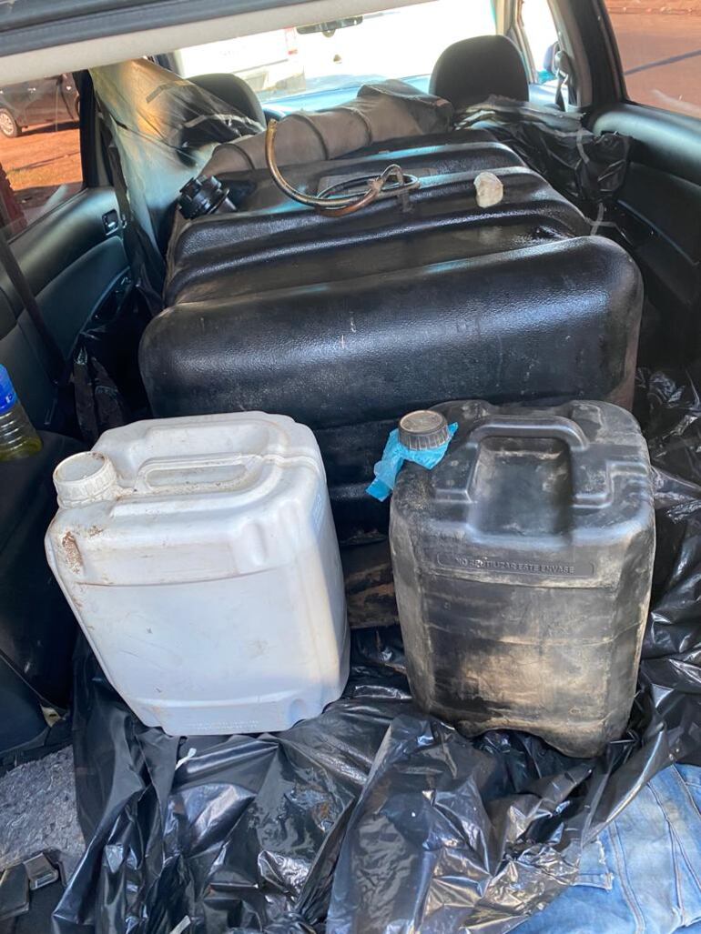 Ante el sospechoso movimiento, con una patrulla procedieron a seguir al vehículo y, antes de cruzar el Puente Remanso, fue retenido para una verificación. Dentro se transportaba un tanque de combustible de 300 litros aproximadamente. “No tenía asientos traseros, solo tenía un hule y el tanque y dos bidones más”, expresó Aguero.