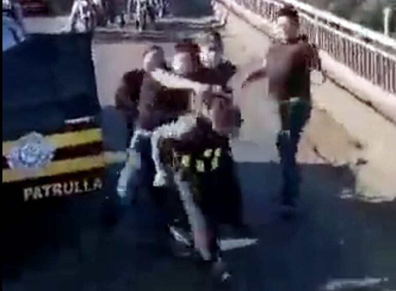 El sábado, el concurrido puente Remanso fue escenario de una pelea a golpes que involucró a dos agentes de la Patrulla Caminera, a un policía que estaba de civil y también a su acompañante. El video sobre el hecho rápidamente se hizo viral en las redes sociales y en el material se observa que había una larga fila de vehículos que también estaban esperando transitar.
