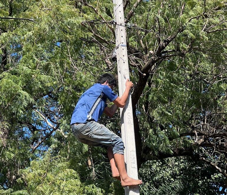 La oficial 1.º Ninfa Ferreira de la Comisaría 24 Central de la ciudad de San Antonio, relató la detención de un hombre que se encontraba trepado a una columna, con la intención de robar varios metros de cable de Copaco.