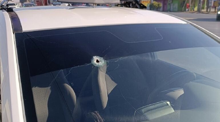 Al respecto, el jefe policial detalló que él se encontraba a bordo del móvil C-21 y en medio de la persecución, los delincuentes abrieron fuego contra la patrullera y una de las balas impactó contra el lado del acompañante, atravesando directamente el parabrisas.