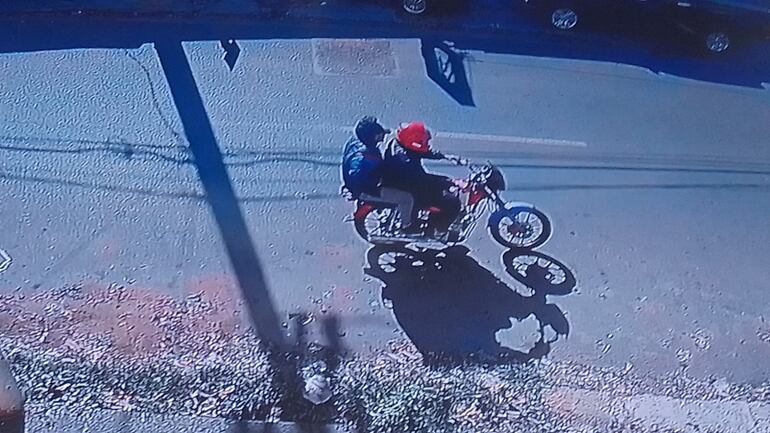 Posteriormente, ambos motociclistas bajan de la moto, realizan disparos con arma de fuego y esto hace que los dos ocupantes del camión desciendan del vehículo.