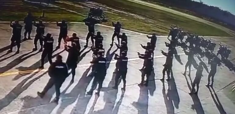 Hoy se dio a conocer el video sobre este accidente del que resultó víctima el suboficial Ramón Augusto Rivas Brítez, quien se encontraba hacia el fondo del grupo y tras el disparo, cae al suelo y es asistido por otros uniformados.