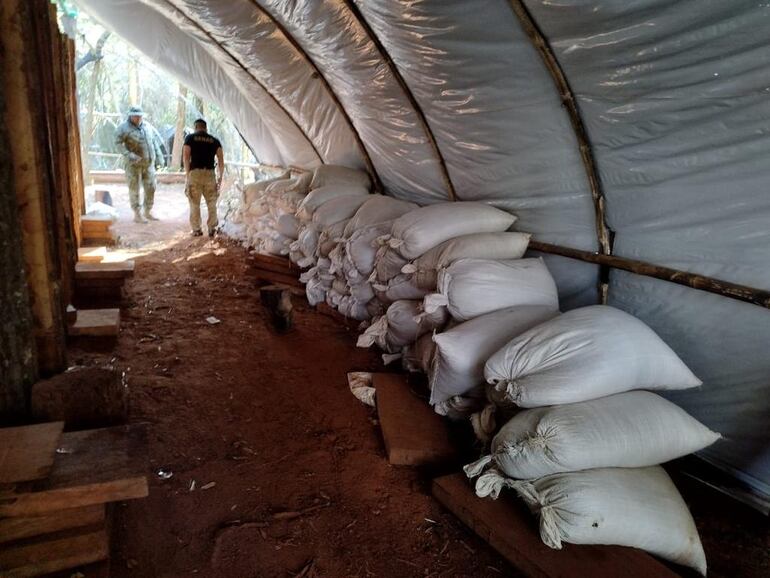 Mediante trabajos de inteligencia se logró este viernes ubicar la zona donde estaban ocultas los 2.355 kilos de marihuana picada, distribuidas en 124 bolsas. También durante el cateo los antidrogas se encontraron ocho prensas rústicas de madera, una prensa de hierro, veintiún gatos hidráulicos y siete campamentos precarios.
