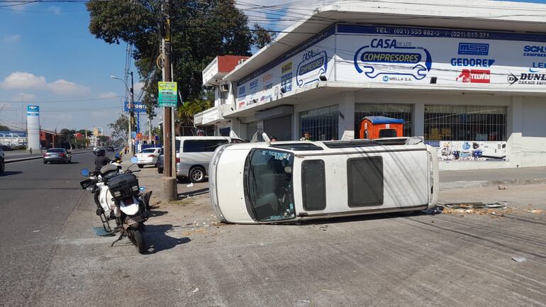 Un Toyota Sienna y un Toyota Hiace colisionaron cerca de las 13:00 de este domingo sobre la avenida Eusebio Ayala. El oficial primero Santiago Moral, de la Comisaría 16ª, detalló que uno de los rodados circulaba sobre la avenida principal e intentó girar para tomar la calle Cedro, momento en el cual se produjo el choque.