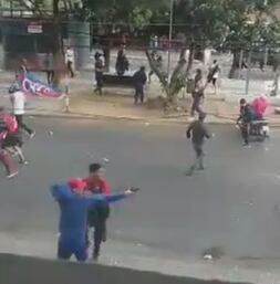 En un descuido de los escasos uniformados que estaban desplegados en aquel sector, los miembros del Comando Chaca hicieron llover todo tipo de proyectiles contra sus ocasionales rivales, lo que generó un corrida generalizada y peleas por todas las calles aledañas.
