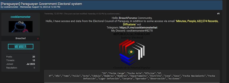 “Puede ser que sea un fake (falso) para estafar a alguien, puede ser que tengan lo que dicen... Pero eso estamos analizando, la investigación está ya en curso. Hemos reportado el sitio, ya están alertadas todas las instituciones, que están verificando sus sistemas para ver si hay indicios de que un agente externo haya ingresado”, añadió para ABC Cardinal.