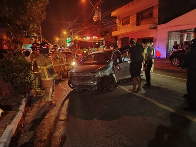 Un hombre que conducía un vehículo de la marca Toyota, modelo Sienta, volcó lateralmente cuando su conductor, identificado como Juan Carlos Azuaga Escurra (44), chocó contra un basurero.