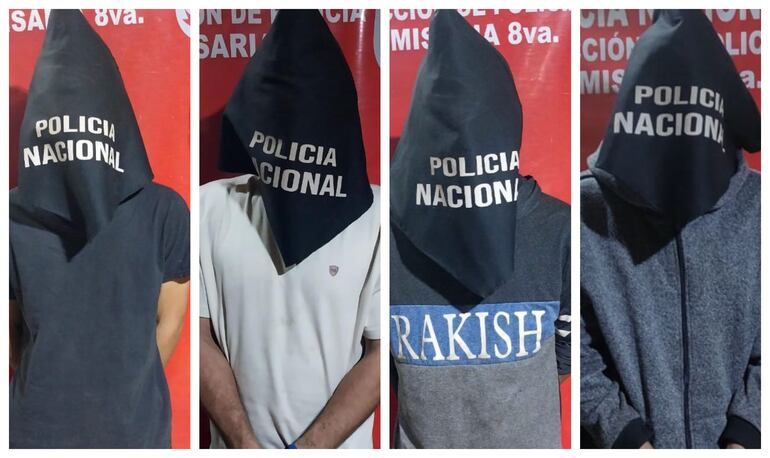 Los aprehendidos son Cristhian Armando Roble Vera (25); Desiderio López Riquelme (33) con antecedentes por robo agravado y tenencia sin autorización de sustancias estupefacientes Richard David González Quintana (31), con antecedentes por hurto agravado y con prohibición de portar armas y salir del país y uno hombre que dice llamarse César Antonio Villalba (22) ya que no fue identificado por el sistema AFIS y será comunicado a la Oficina Central.