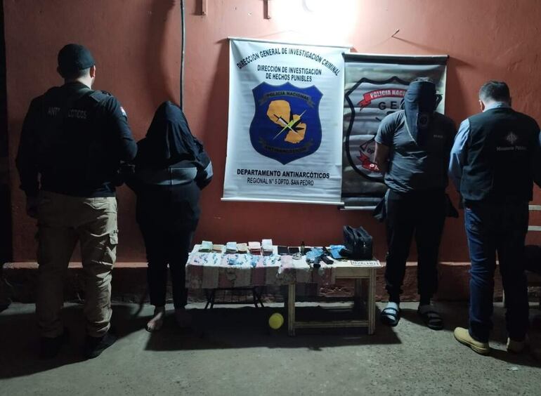 En el primer procedimiento realizado en Santaní quedaron detenidos Víctor Gómez Benítez (43) y Victorina Núñez Barreto (56), ambos domiciliados en el barrio Coronel Vicente Mongelós de esta ciudad.