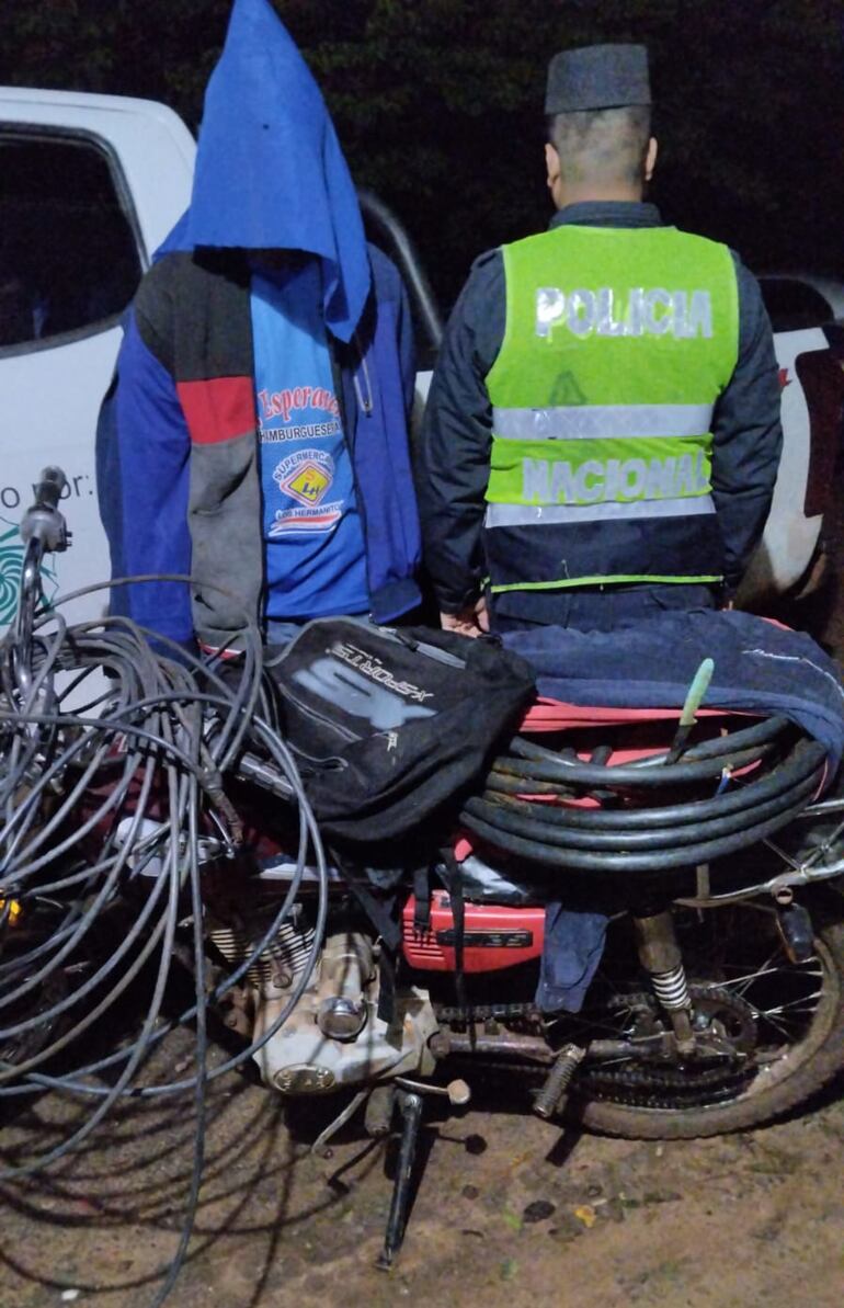 Posterior a la detención de Rubén González (30), se confiscaron la motocicleta y 52 metros de cables subterráneos, propiedad de la ANDE.