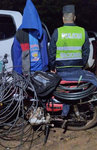 Posterior a la detención de Rubén González (30), se confiscaron la motocicleta y 52 metros de cables subterráneos, propiedad de la ANDE.