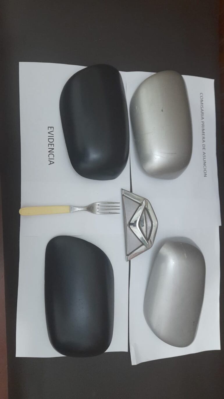 En el poder del delincuente fueron hallados -como evidencias- cuatro tapas de retrovisores, el logo del automóvil del denunciante y un tenedor con el que habría extraído la insignia frontal del vehículo.