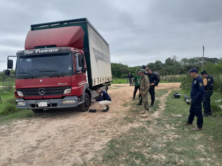 El camión fue robado supuestamente ayer en la compañía Guazú Corá, distrito de Villeta, departamento Central, en donde fue víctima el chofer de 31 años de nombre Jorge Manuel Ayala, domiciliado en el km 11 de Ciudad del Este. El camión supuestamente robado es de la marca Mercedes Benz, color rojo, con carrocería color blanco y con puerta trasera verde y con placa N° HGE 673 PY.