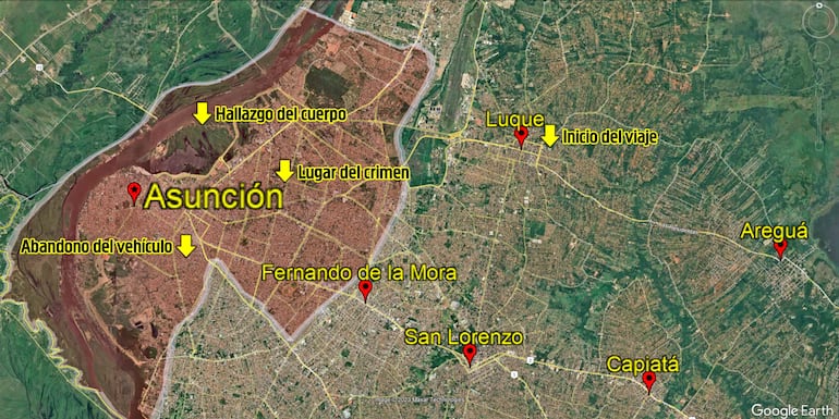 Una investigación técnica del departamento Antisecuestro de la Policía determinó que el policía Oliver Lezcano fue el último pasajero que subió a su auto el militar Líder Ríos aquella noche, sobre la calle Dora Gómez Bueno de Acuña, frente al Hospital General de Luque.