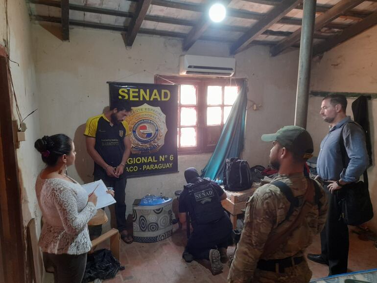 Es así que, junto con agentes y un can detector de la Senad, se constituyeron en la casa y procedieron a verificar las instalaciones.
