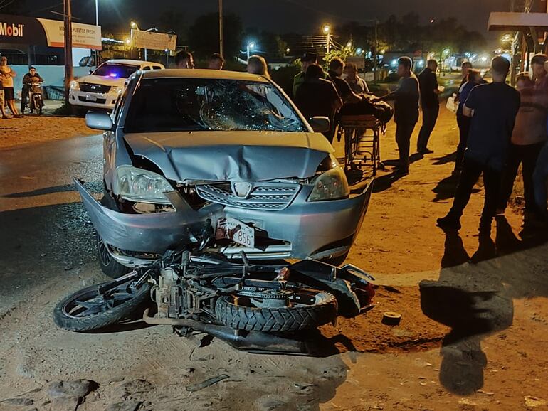La motocicleta Taiga TL 150 circulaba con dirección a Luque, mientras que el automóvil, en sentido contrario. El Toyota Allex iba a girar a la izquierda para entrar en una calle sin nombre y allí se produjo el violento impacto.