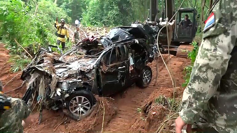 Cerca de este mediodía se reportó el hallazgo de la camioneta que utilizaban los militares desaparecidos cuando fueron arrastrados por el raudal esta madrugada. Los rescatistas ya lograron retirar el vehículo del lecho del arroyo Lambaré, pero no encontraron a los militares.