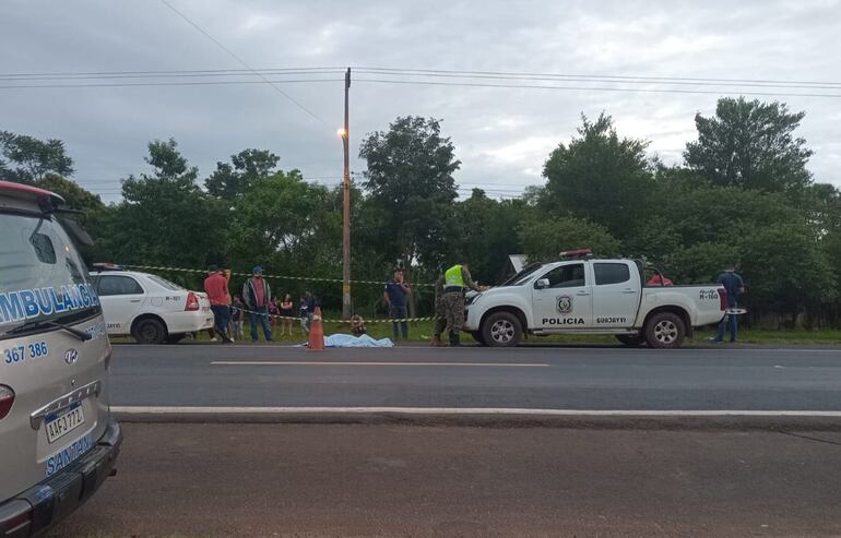 El hecho se registró hoy aproximadamente a las 04:50, en la ruta PY08, entre las calles 2.000 y 4.000 Defensores del Chaco de esta jurisdicción, según informe de efectivos de la Comisaría 16 de esta localidad. La víctima fatal fue identificada como Favio Aquino (28), domiciliado en vida en el barrio María Auxiliadora de Guayaybí.